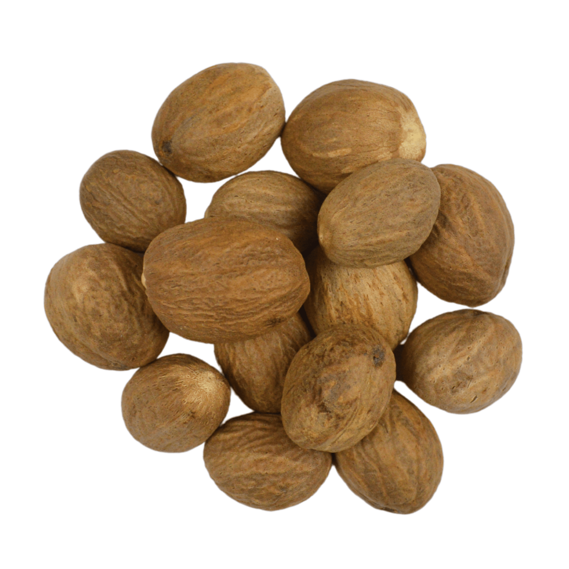 Hele nootmuskaat is de nootmuskaatnoot in zijn natuurlijke vorm, voordat deze tot poeder wordt gemalen. Het is een kleine, ovale noot met een harde, donkerbruine schil. De nootmuskaatnoot heeft een intense, warme en nootachtige smaak, en een rijke aroma. Hele nootmuskaat wordt vaak gebruikt in de keuken om gerechten op smaak te brengen, vooral in hartige gerechten zoals stoofschotels, sauzen, groenten, aardappelpuree en bepaalde soorten gebak. Voor gebruik wordt de nootmuskaatnoot geraspt of gemalen om zijn aroma en smaak vrij te geven.
