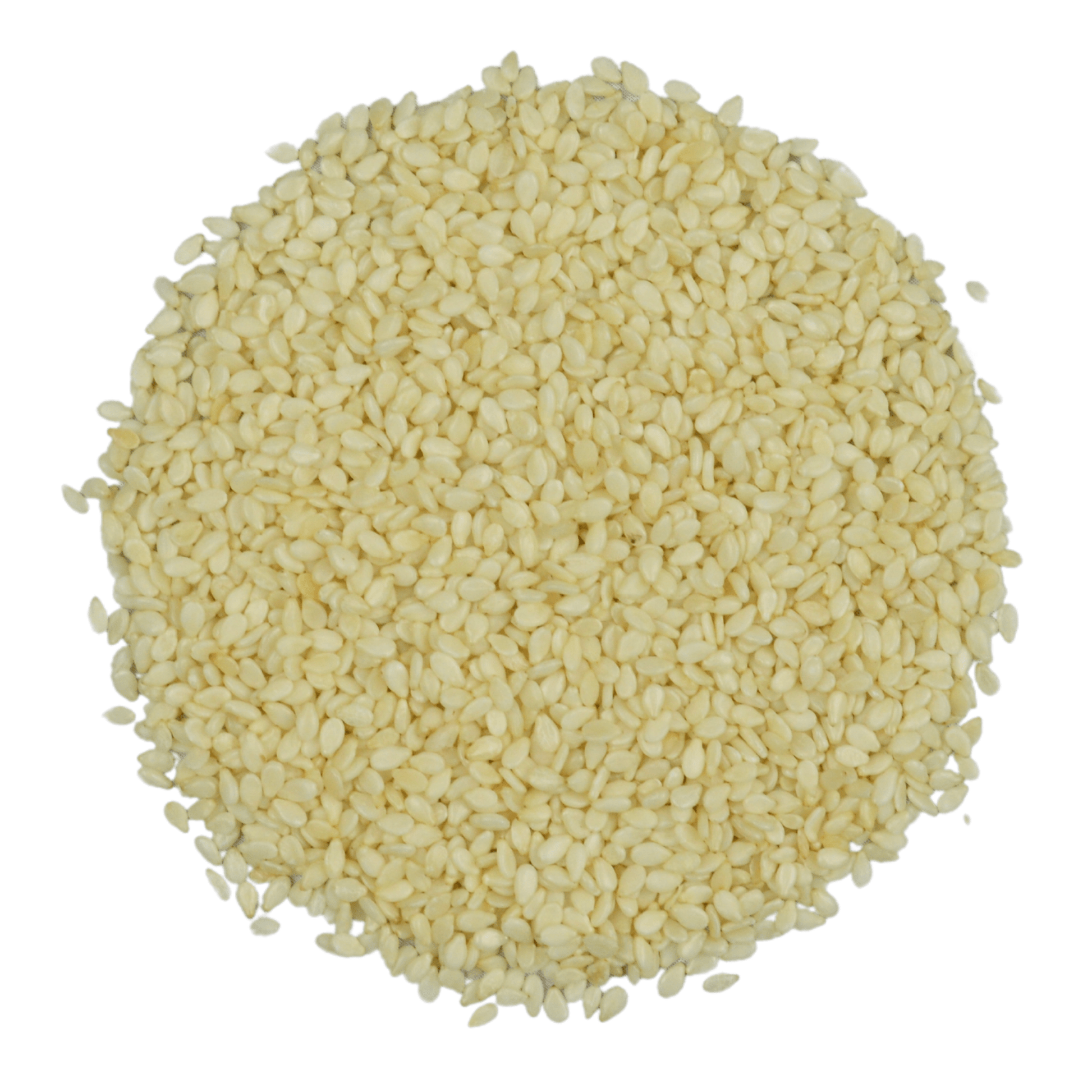 Gepeld sesamzaad is afkomstig van de sesamplant en heeft een licht nootachtige smaak. De zaden worden ontdaan van hun buitenste schil, waardoor ze een bleke, crèmekleurige kleur krijgen. Gepeld sesamzaad wordt vaak gebruikt als garnering op broodjes, salades, en sushi. Het kan ook worden geroosterd en gemalen tot tahin, een belangrijk ingrediënt in hummus en andere Midden-Oosterse gerechten. Sesamzaad is rijk aan voedingsstoffen zoals eiwitten, vezels en gezonde vetten.