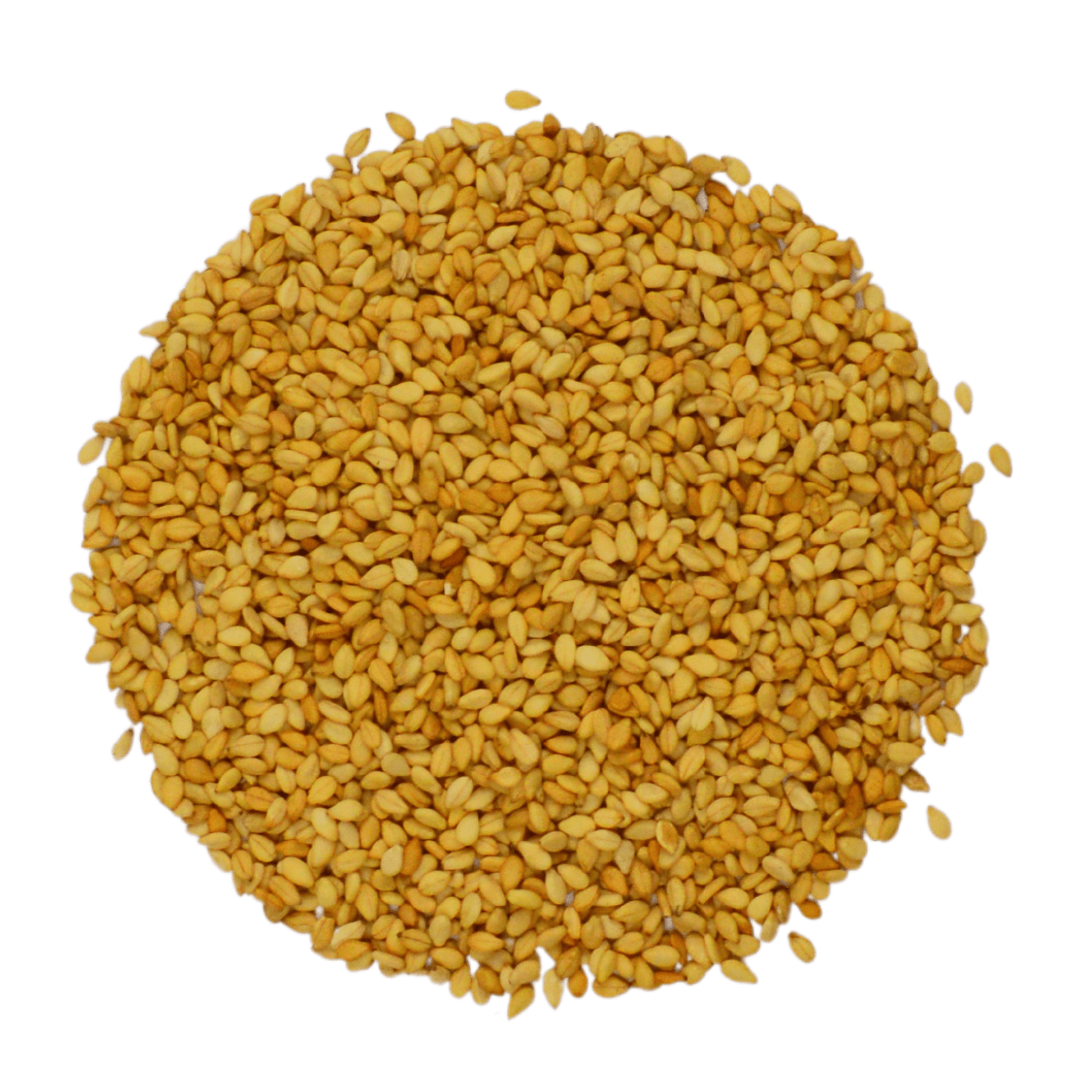 Geroosterd sesamzaad is sesamzaad dat lichtjes is geroosterd in een droge pan of oven, waardoor het een diepere, nootachtige smaak en een knapperige textuur krijgt. Het wordt vaak gebruikt als smaakmaker en garnituur in verschillende gerechten, zoals salades, rijstgerechten, noedels, en sushi. Geroosterd sesamzaad voegt een heerlijke aroma en een knapperige textuur toe aan gerechten, en wordt ook gebruikt als topping op broodjes, bagels en andere gebakken producten.